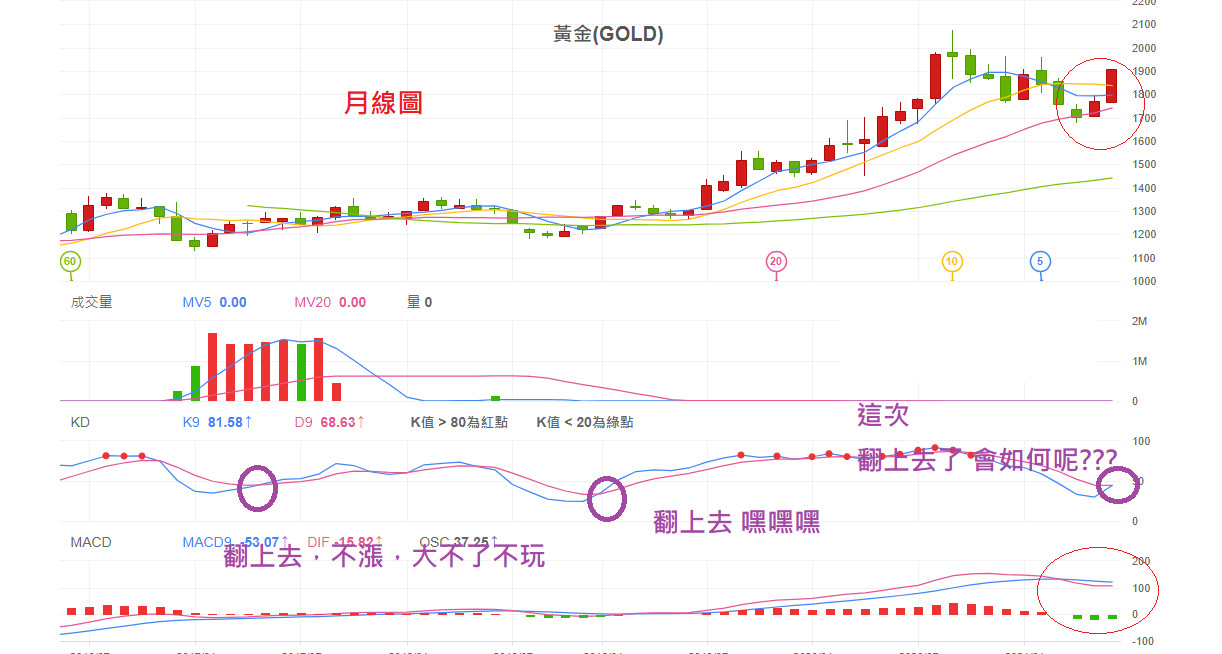之前無心貼過黃金月線圖與台股月線圖作對比,你可以自行再参照。