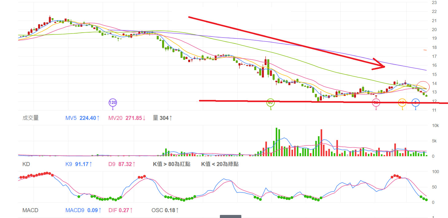 (反方說:或許可能砍在阿呆谷。指標線型表示,還有低點)