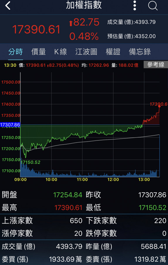 今天台股一個字……就是「漲」!