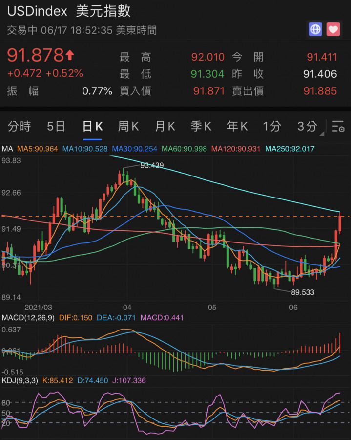 美元指數MA250有壓……