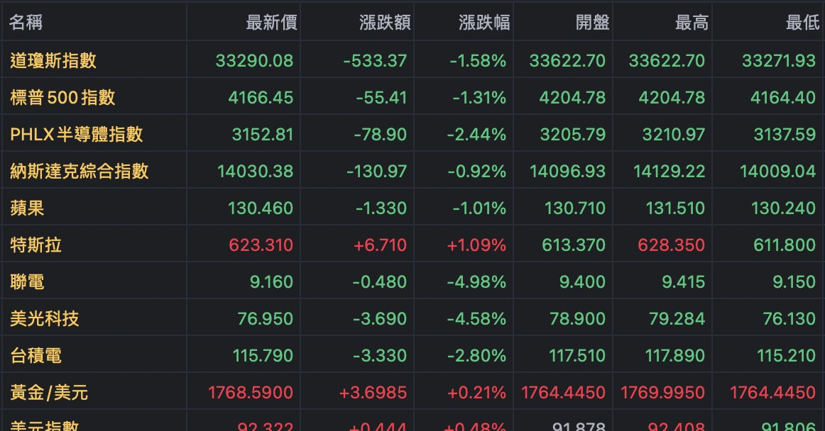 昨晚美股開低走高