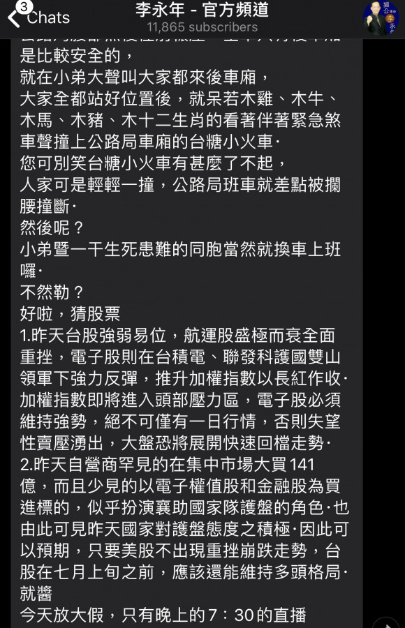 回覆 嗨爪主席:下周一 面板股要是沒有彈上來……那我就糗...