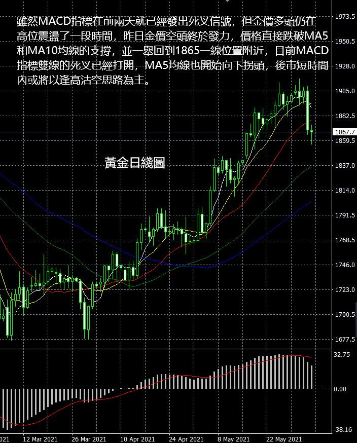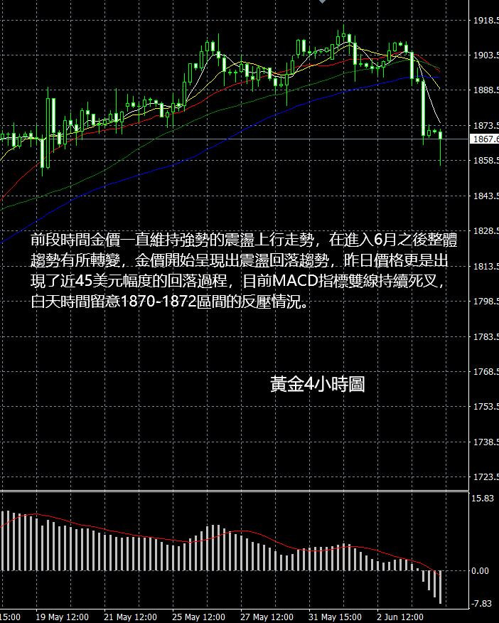 1870-1872區間下看,目標1860-1862附近,風控3美元。