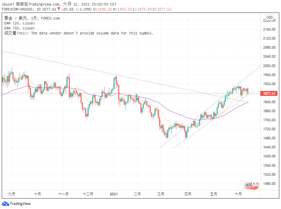 我是做大波段,跌破上升趨勢線我就跑,不過以現在的經濟局勢看,聯準會縮表加息只是喊心安的,所以黃金跌破的機率我認為不大。
