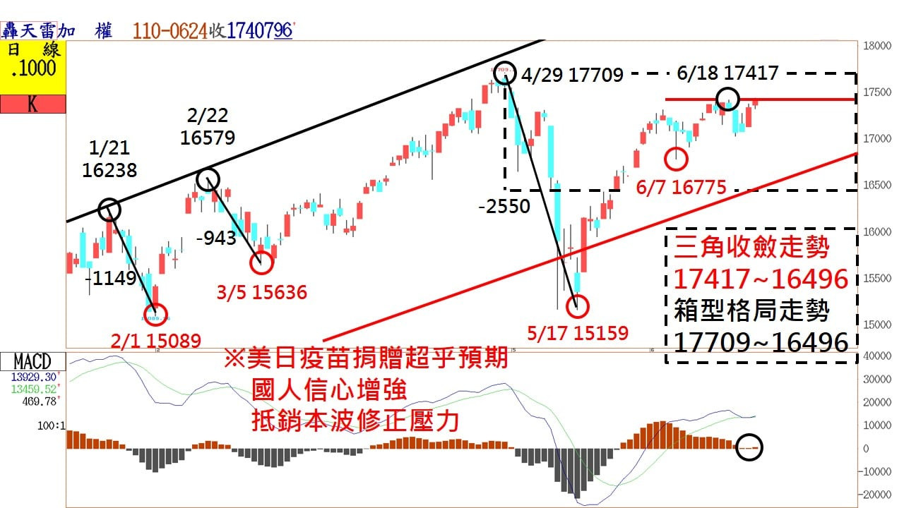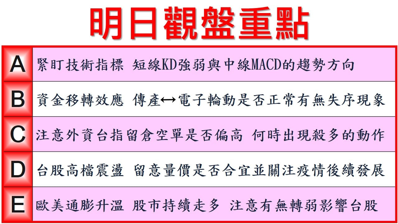 台股從端午過後的行情只有三角收歛或是箱型震盪格局,在一套資金的轉換之下,當航運、鋼鐵類股轉弱時資金就會轉入電子類股,而低位階、低價、利多題材在後的股票將有機會受惠,操作上不鼓勵大家作追高的動作,拉回逢低再作佈局買進的動作,這個階段可以先了解個別股票格局是處於何種趨勢型態位階,在支撐區站買、拉高到壓力區站賣