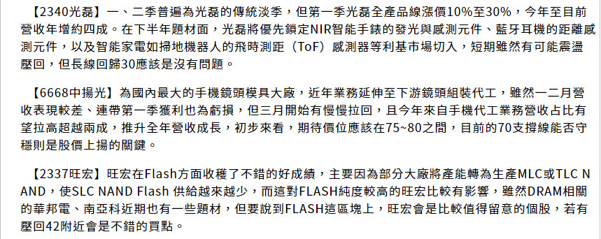 4. 【8358金居】高階產品為Whitley獨家供應商,相關材料占營收比由第一季12%大幅跳升至20%,下半年將更進一步至30%以上,另一平台Eagle Stream之高階產品則將於明年第一季量產,投信今年大買2.7萬張,本益比16倍,有壓回至季線再考慮。