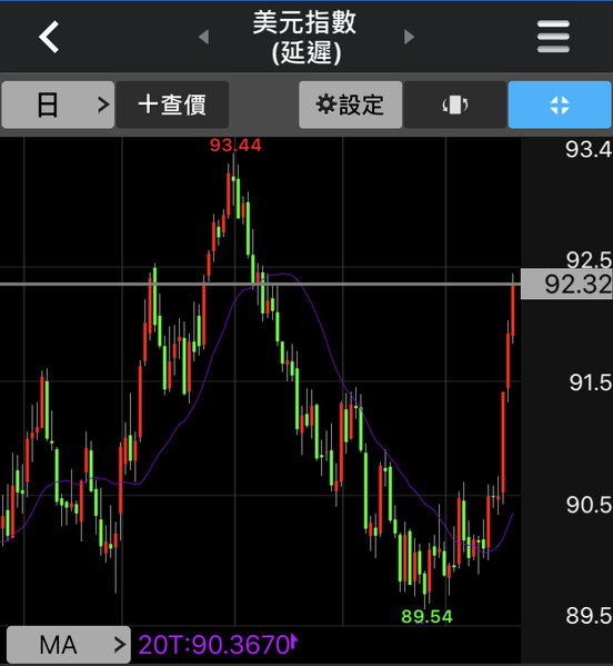 美元指數最近走勢相當強勁,連三根長紅棒,美元如果持續走強,新台幣走貶機會較大,外資要大舉買超台股的機會就不高,可以留意近期美元指數的走向。