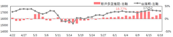 上週五大盤收盤下跌72點,收在17318點,成交量5458億元。外資賣超台股158.14億,近期連三賣,投信也賣超24.84億,在台指期貨部分,外資空單減少1476口,留倉淨空單降至31612口。