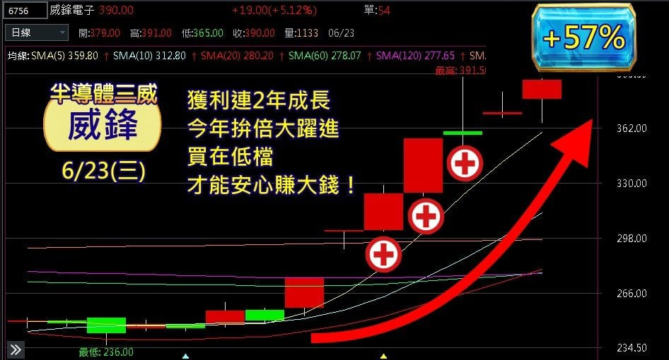 【半導體三威6756威鋒】,上星期連續大漲後,本週股價開始修正,獲利連續兩年成長,今年更是大躍進,持股獲利47%續留