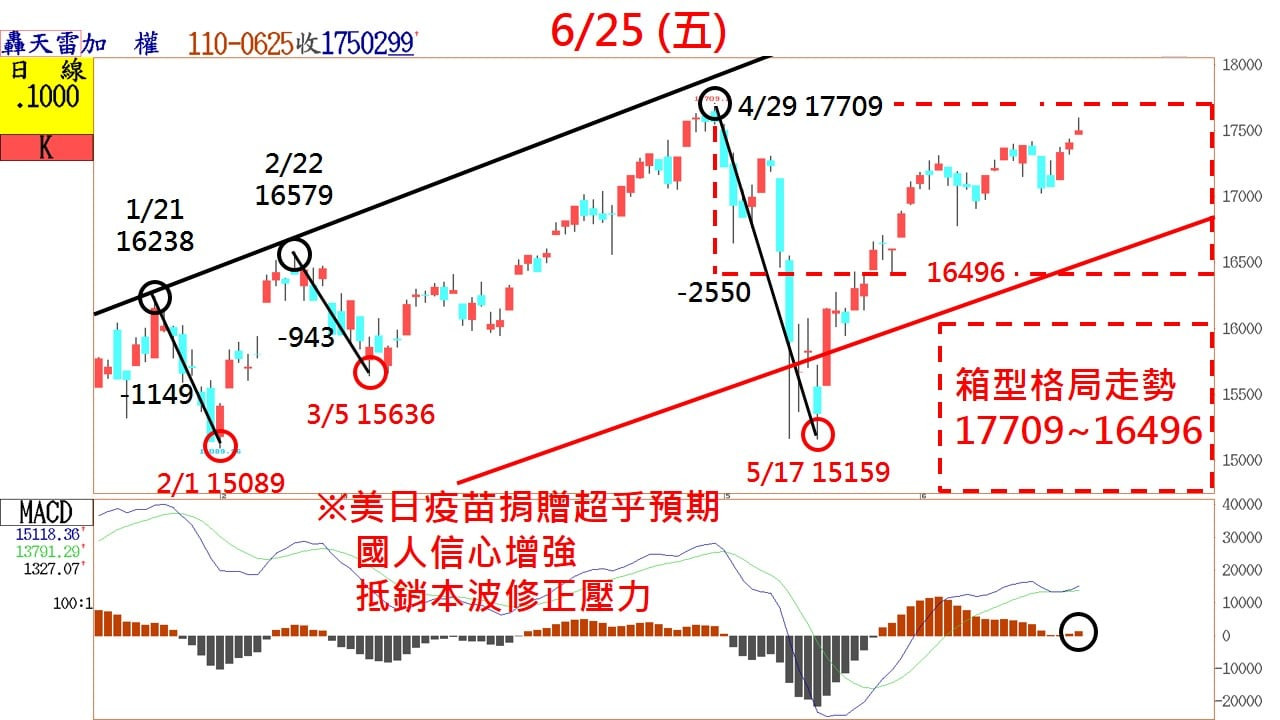 技術指標MACD是中線指標,若柱狀體處於負值是賣方市場走勢會轉弱,若處於正值是買方市場為多方格局,週二提醒要留意大盤17305這個點位,只要指數站回17305之上,大盤的MACD就不會翻負,而台股從週三站上17305之後就逐步往上走高,MACD柱狀體也由收歛至零軸附近開始反轉往上