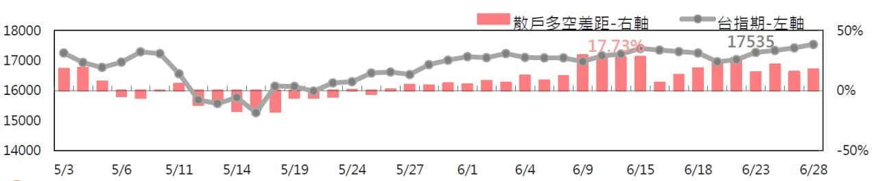 外資買超台股53.75億,近期連四買,在台指期貨部分,外資空單增加540口,留倉淨空單升至30034口。