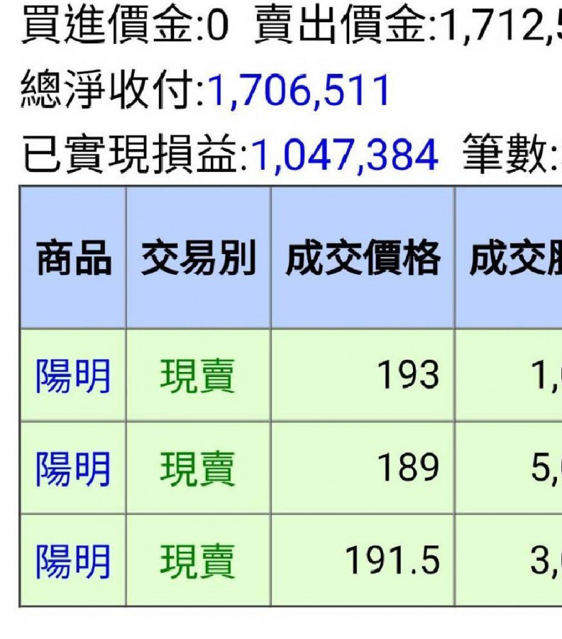 我在110/7/12、13、14日分別出清手上陽明所有持股。