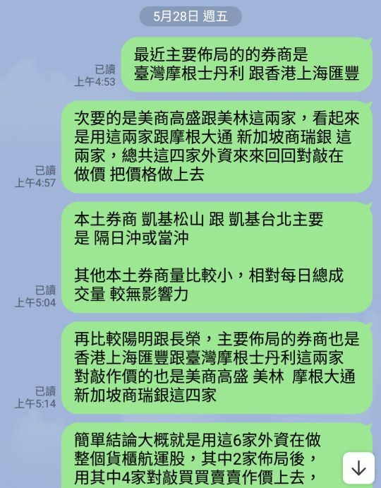 雖然我也覺得像五月一樣,慢慢上拉應該也沒問題,但現在看來長榮先直接漲停站回月線不是不可能,畢竟處置中主力好處理,順便帶貨櫃,航運往上跑,也許先以反彈視之,
