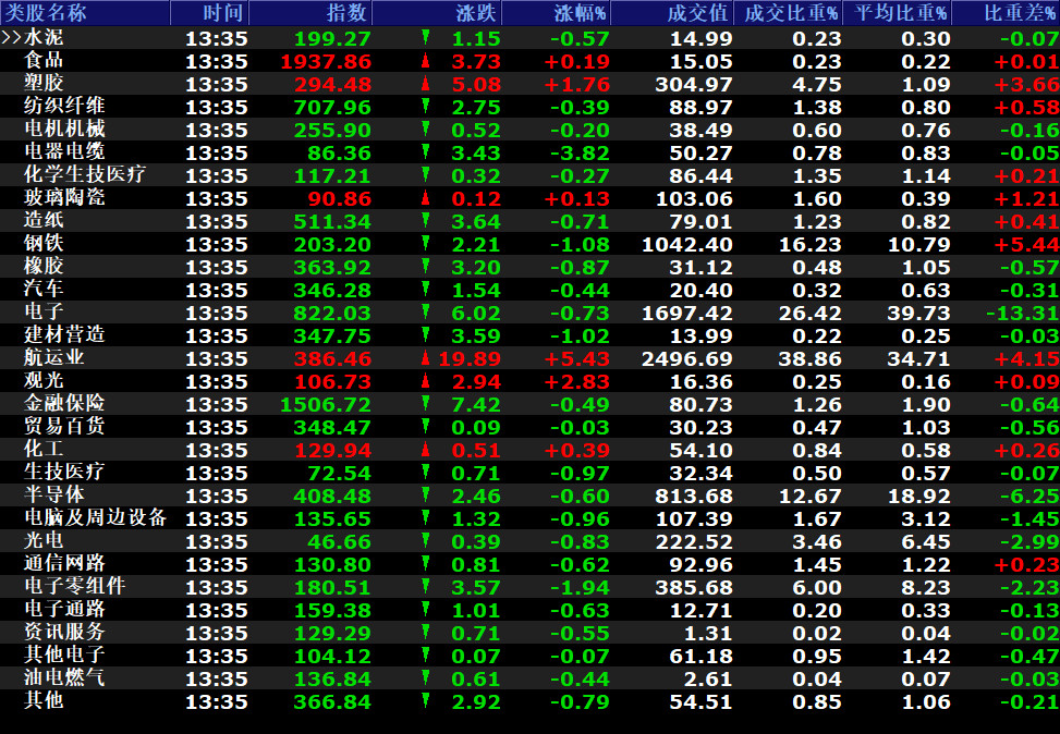 台股所有均線多頭排列指數連續七天站穩5日線,沿著5日線持續上攻屬於非常強勢的軋空格局,主流鋼鐵航運輪漲代表大盤結構仍穩定,再沒有出現大量換手,主流族群爆大量收黑的狀況前台股就是持續偏多操作即可,而大盤要走得更遠電子股扮演重要角色,今天電子股成交比重一度低於3成,下半年是歐美消費旺季可望帶動電子股營收