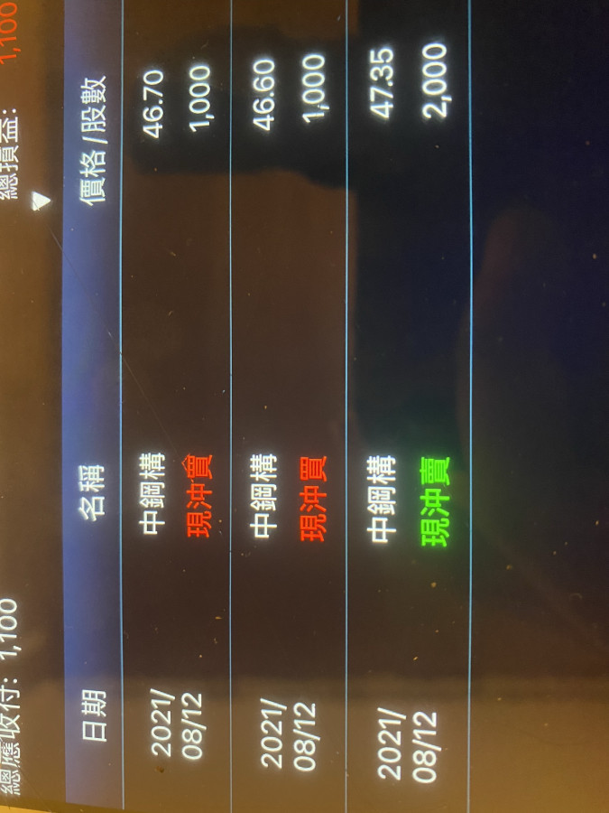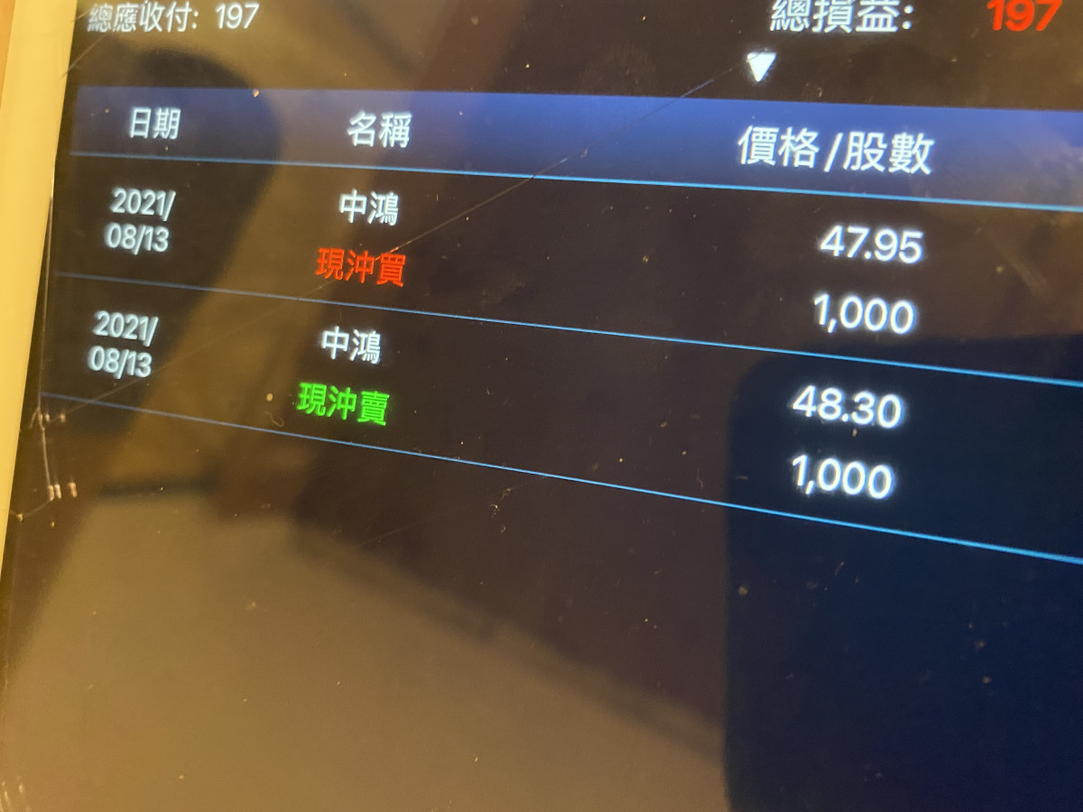 今天當沖的空單尾盤回補....