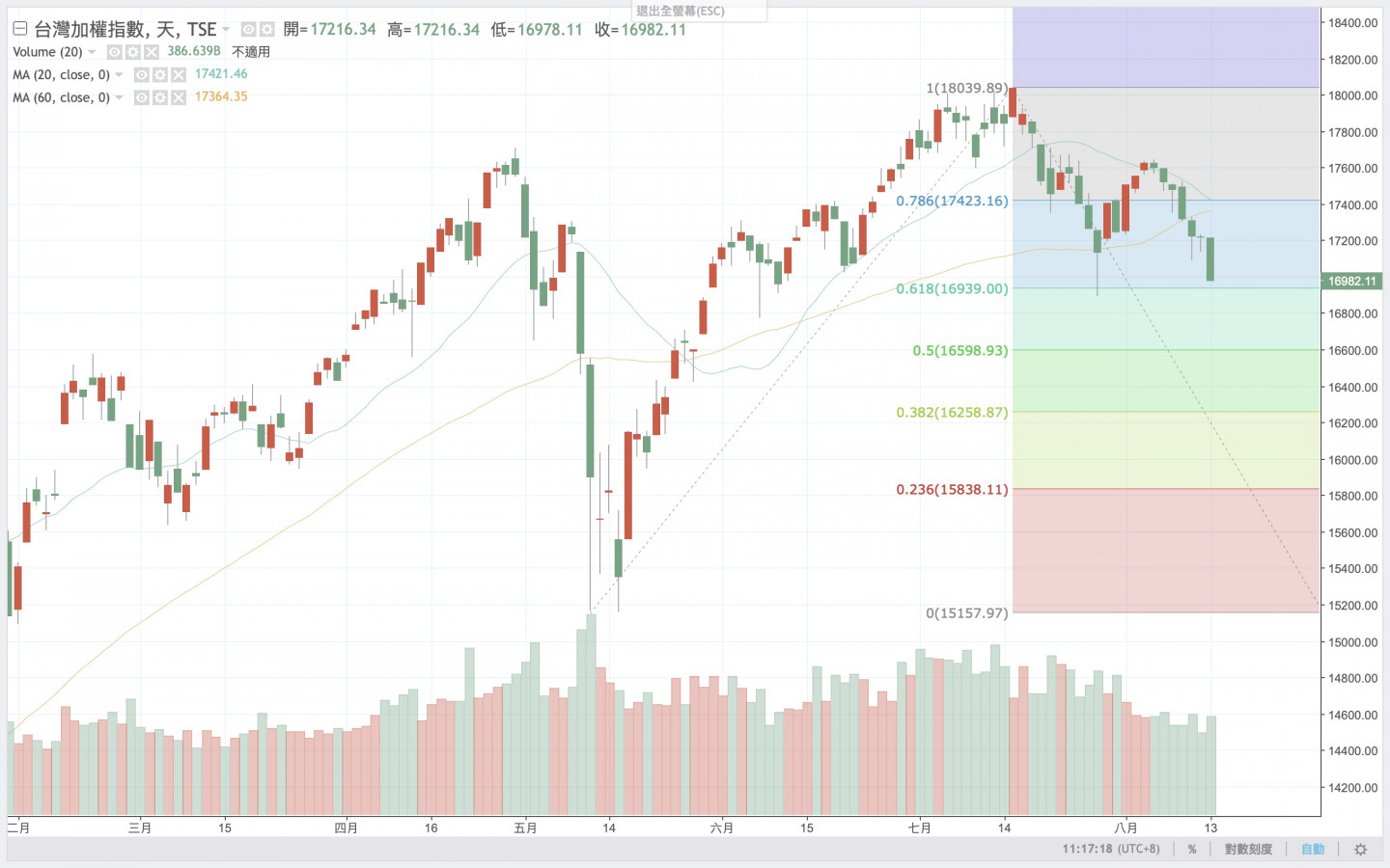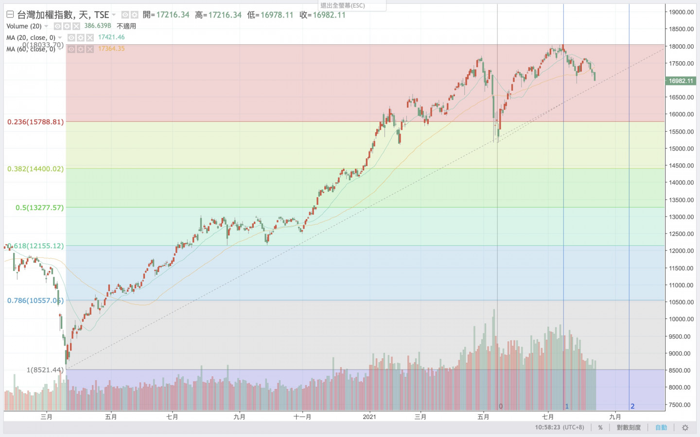 但是主席認為黃金分割率回檔 0.618 就差不多是緊繃了.....