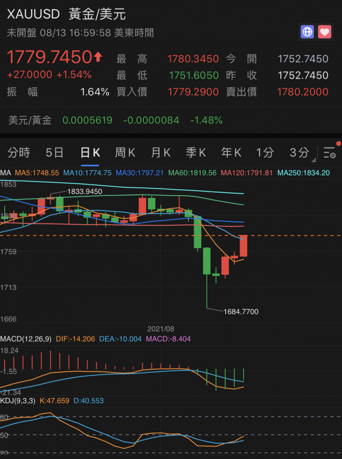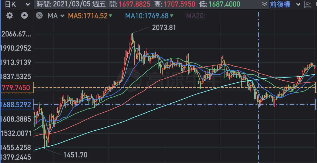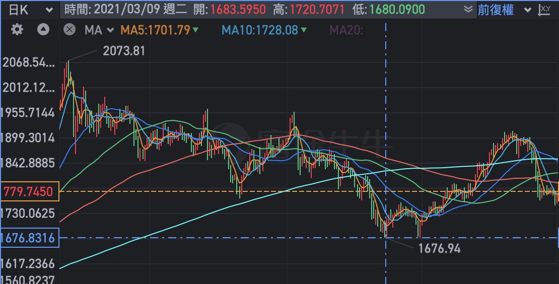 金價2021/3/9 最低價....1676.94