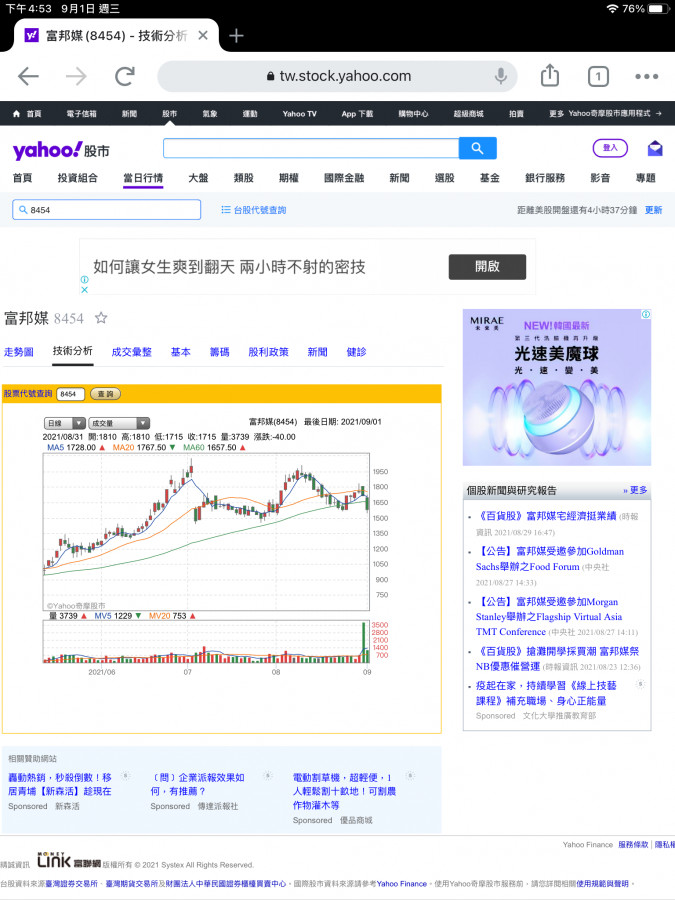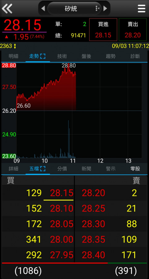 明天開盤只要沒有跌破均價線(白色那條) 就一直觀察