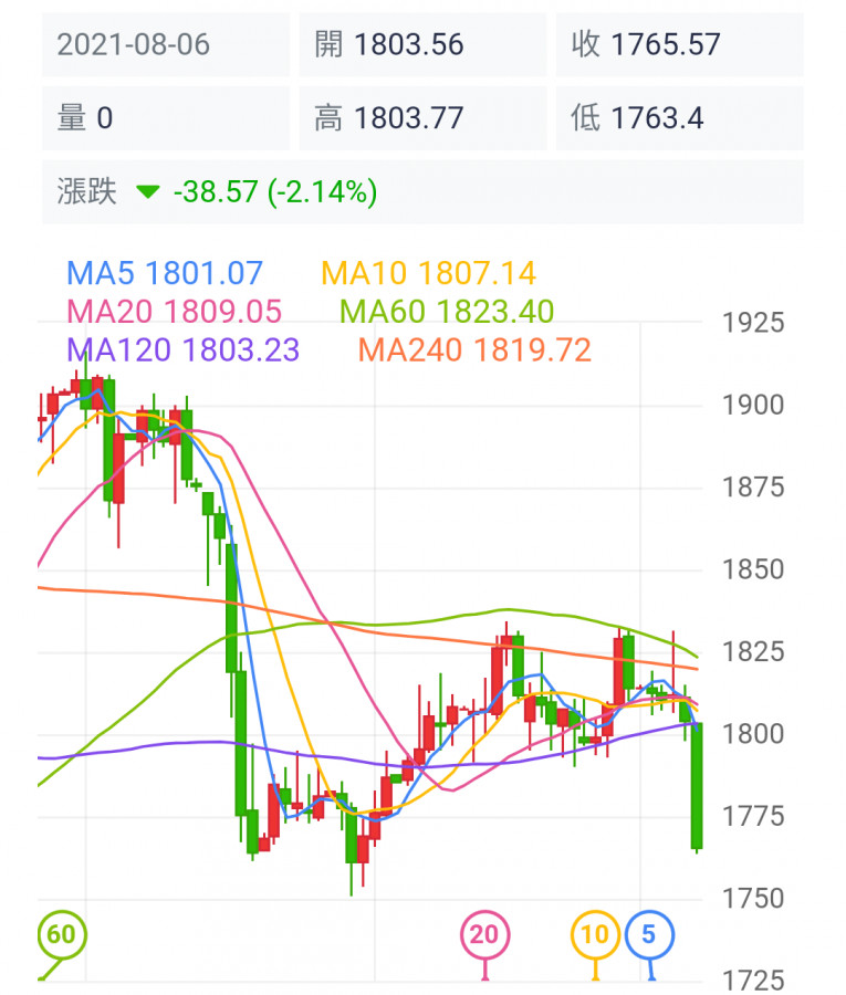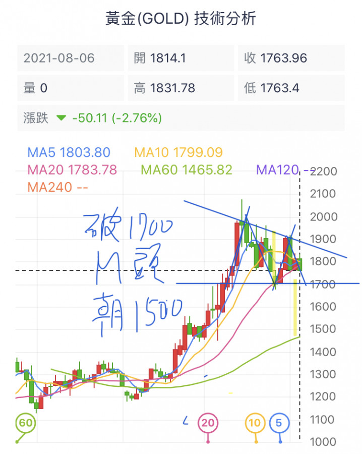 2.跌破1750的支撐線,直接走空頭,往下走。