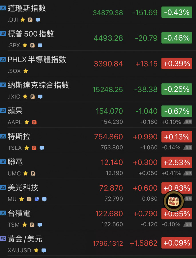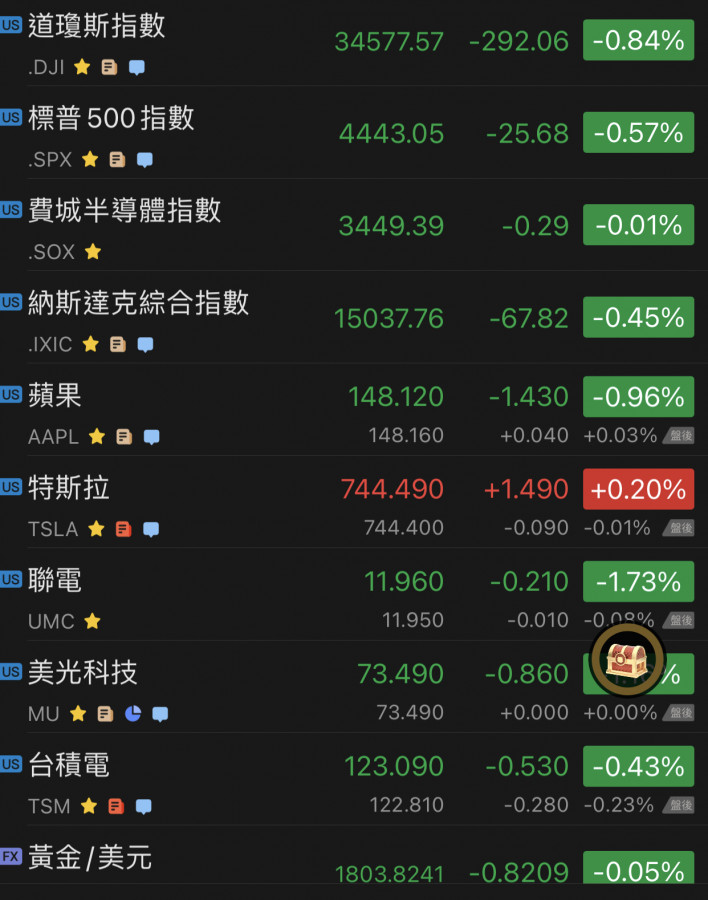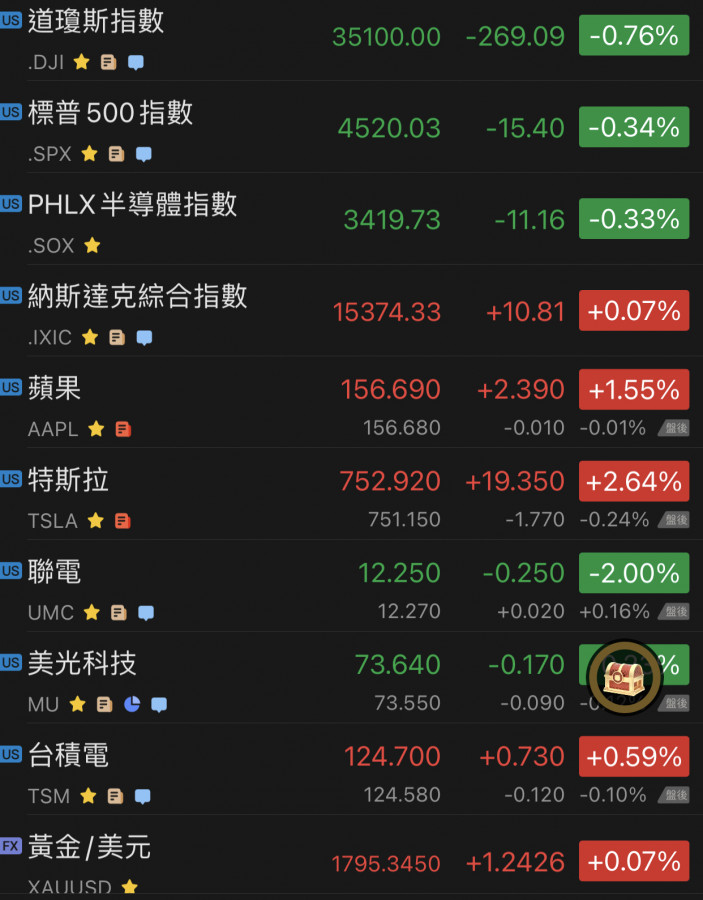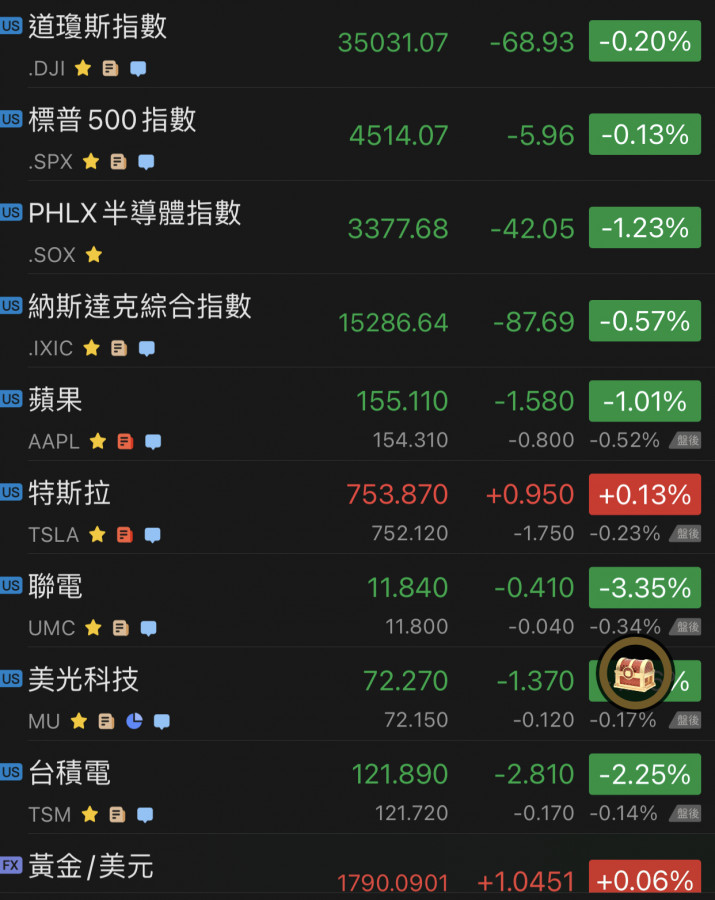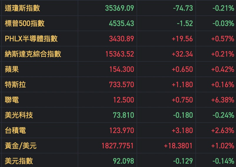 昨晚美股收黑……道瓊跌比較重一點