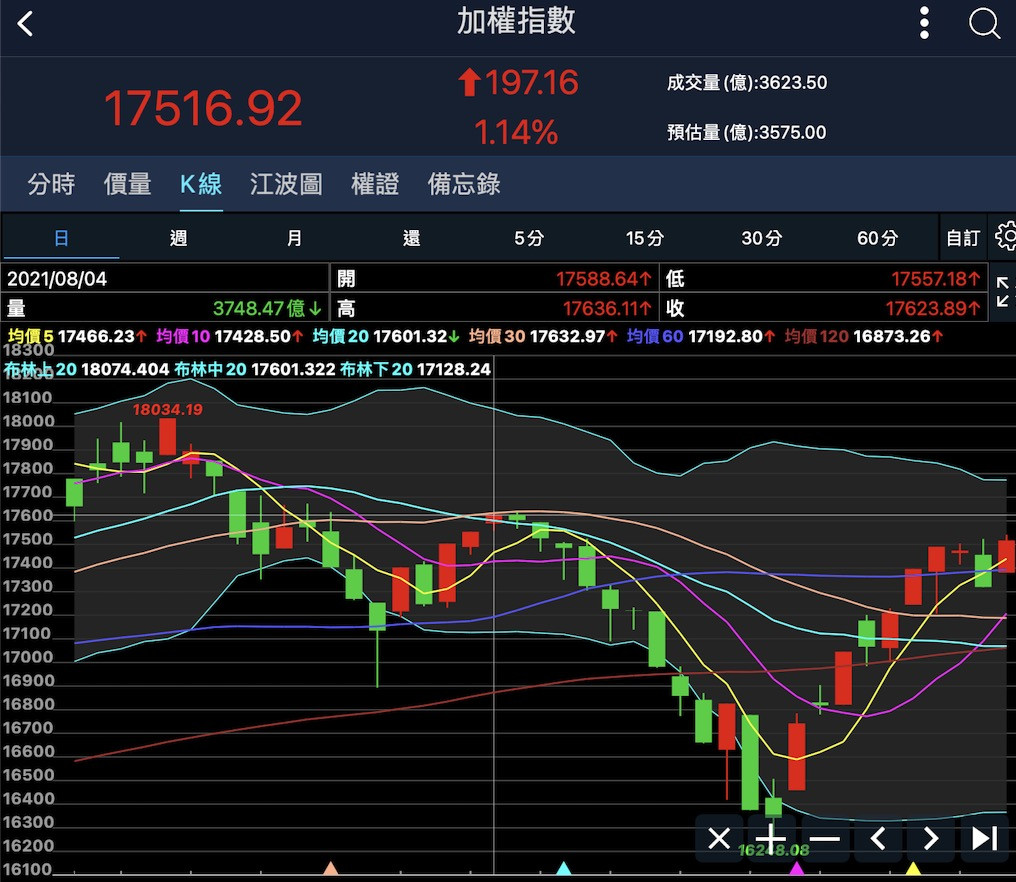 大盤 8/4日的前高 17636 是觀察重點!!!