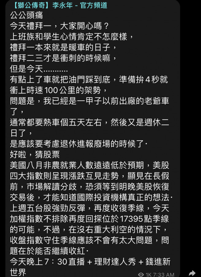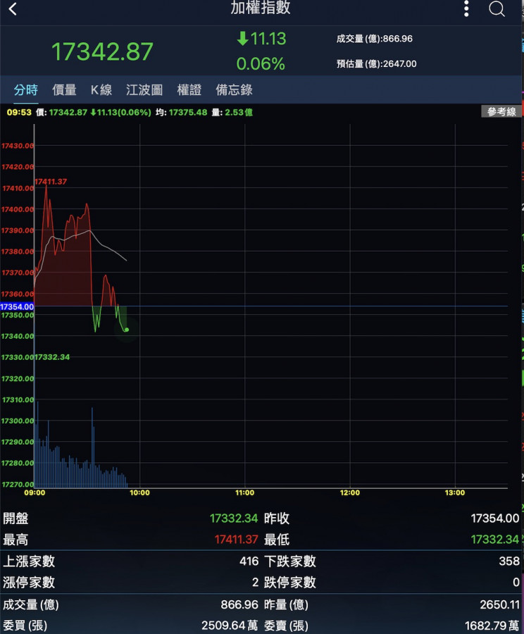 回覆 韭菜硬沖:事態不妙,台指開盤漲2點,觀望氣氛濃厚,...