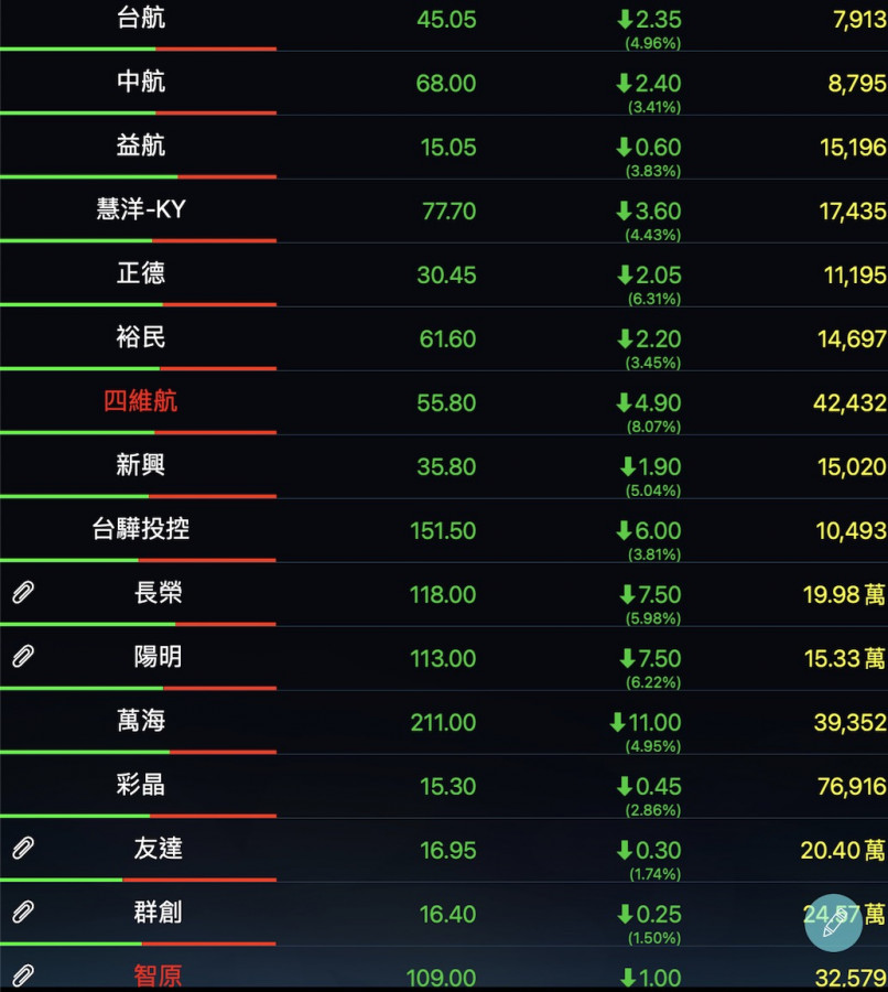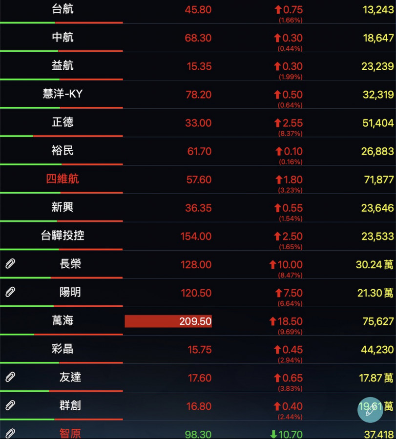 回覆 嗨爪主席:明天開盤不能跌.....航運、面板 反彈...