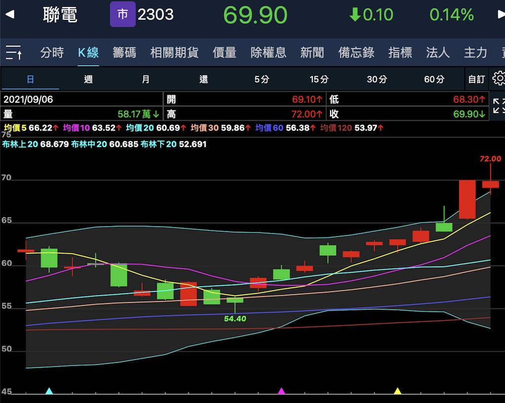 明天聯電5日線會來到...67.6