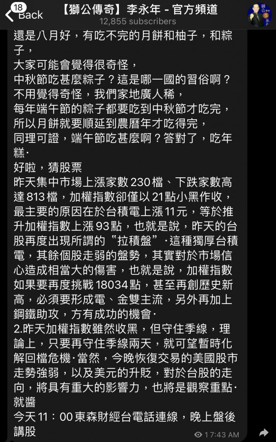 晚上應該會有一堆節目分析跟講解