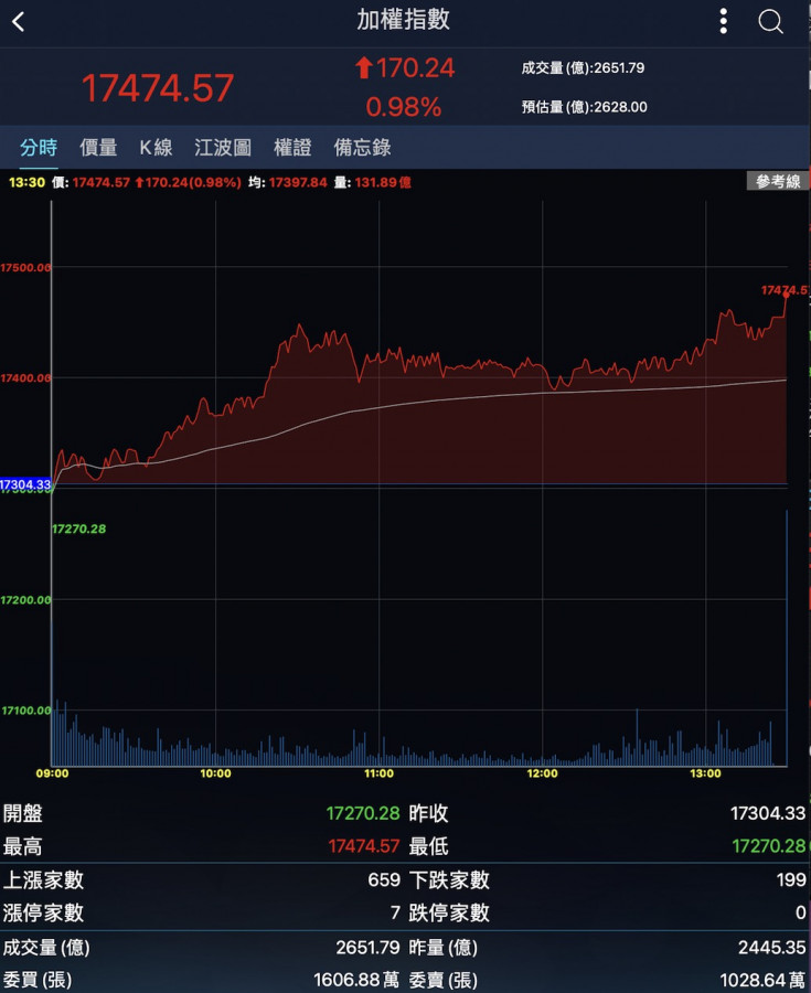 台指期夜盤漲65點……