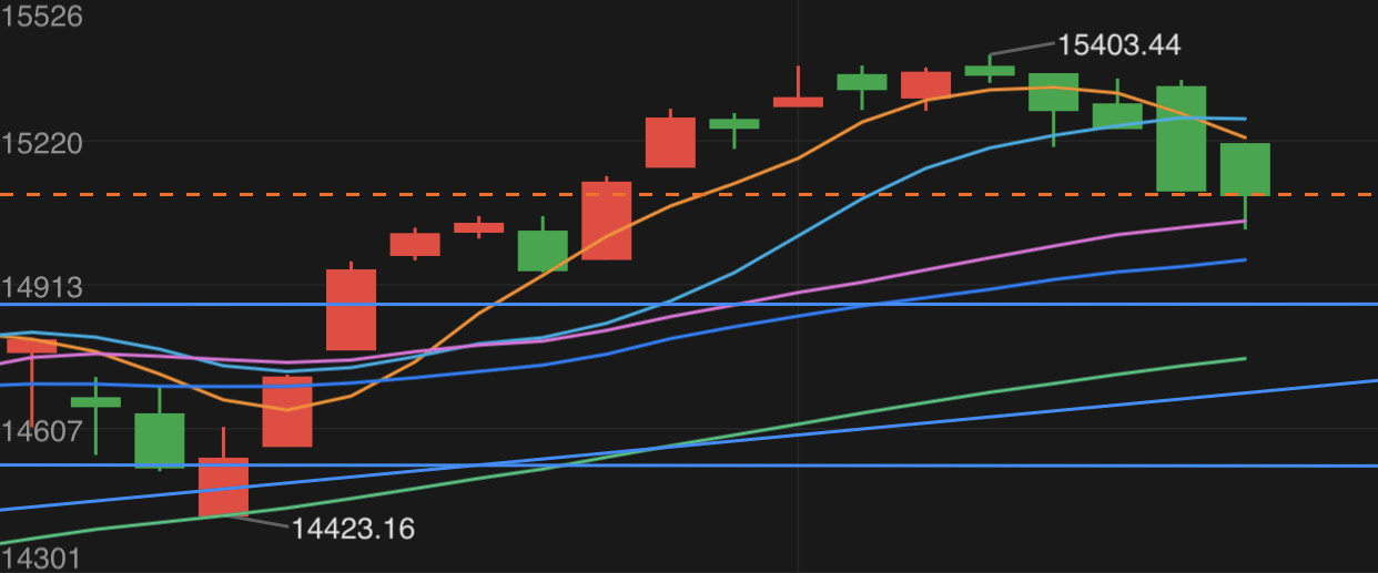 納斯達克,跌到月線獲得支撐反轉