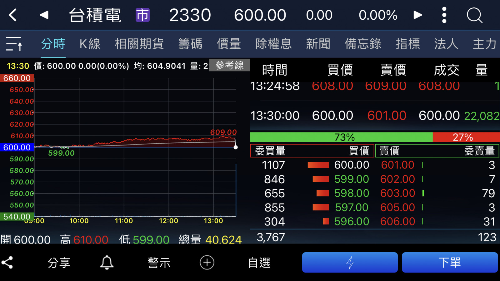 回覆 :主席,13:30台積電瞬間成交22082...