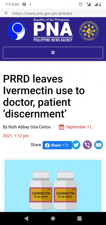 ⭕️ 終止使用伊維菌素治療COVID19 (Sep. 1 ,2021):