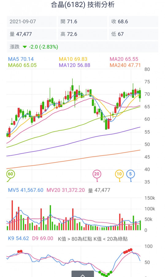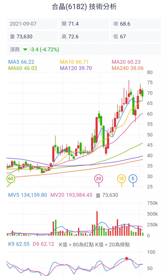 A:近期合晶開盤留下跳空缺口(倒T黑K),整理一下就反彈突破前高,