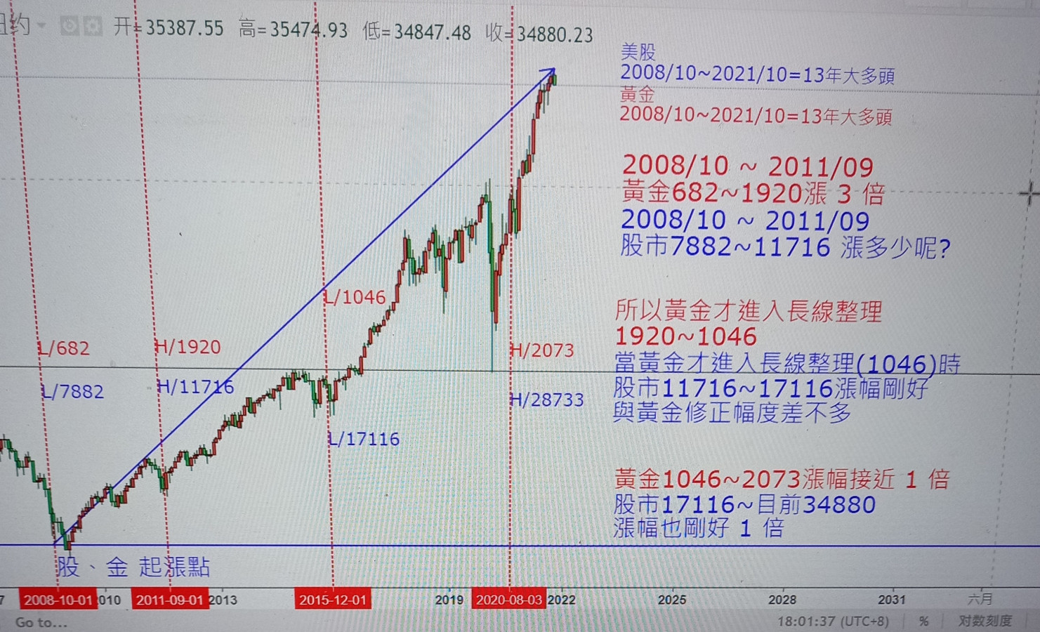 回覆 無心:黃金月線圖黃金與股市,用時間來解說會很複...