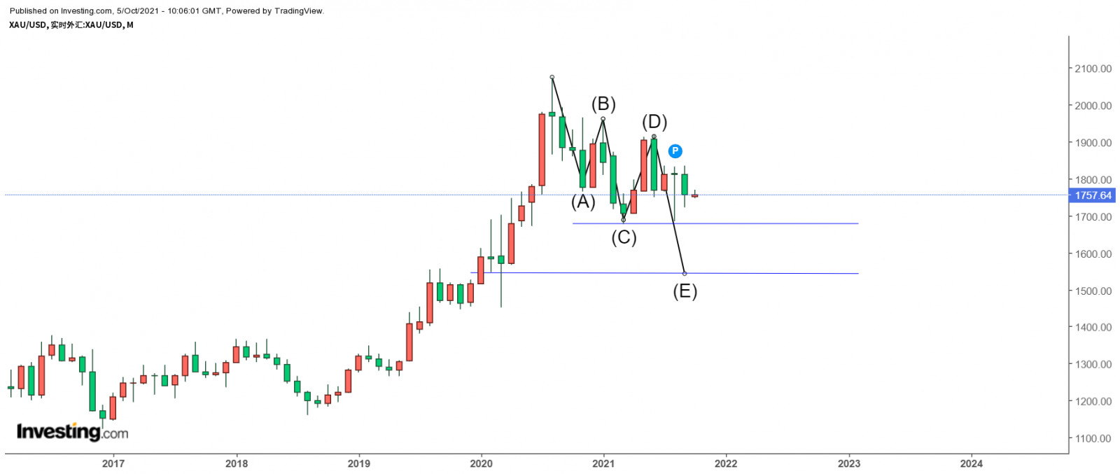 黃金先跌,跌速慢打底盤整時間長久,因為等待下一次經濟衰退來臨。