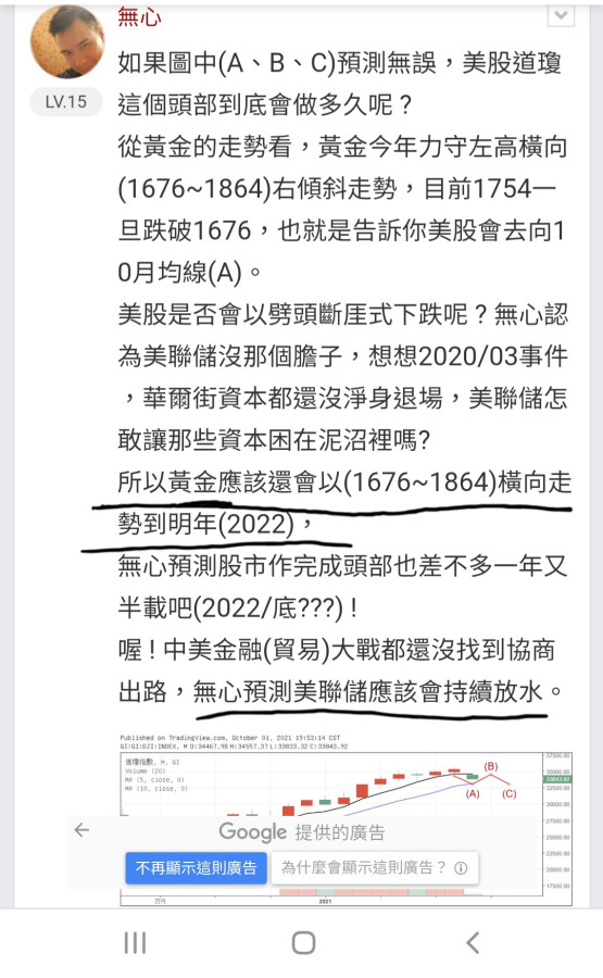 至於黃金等下一次經濟衰退,無心才會再回來。
