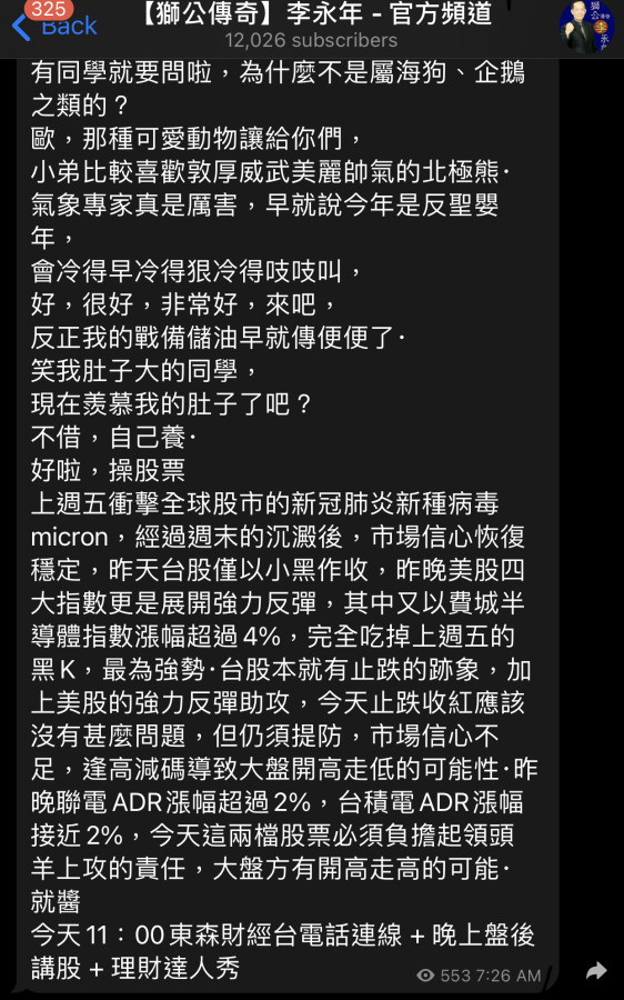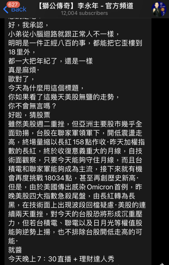 回覆 嗨爪主席:不要看單一天漲跌雞哥、聯電……玩波段&n...