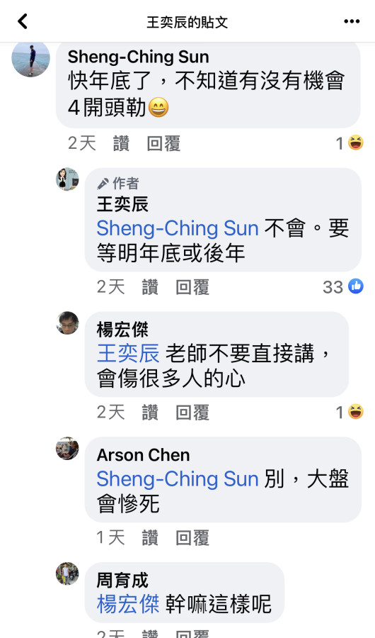 回覆 全職媽媽:主席好真的開好低,有綁手,謝謝主席。大盤...