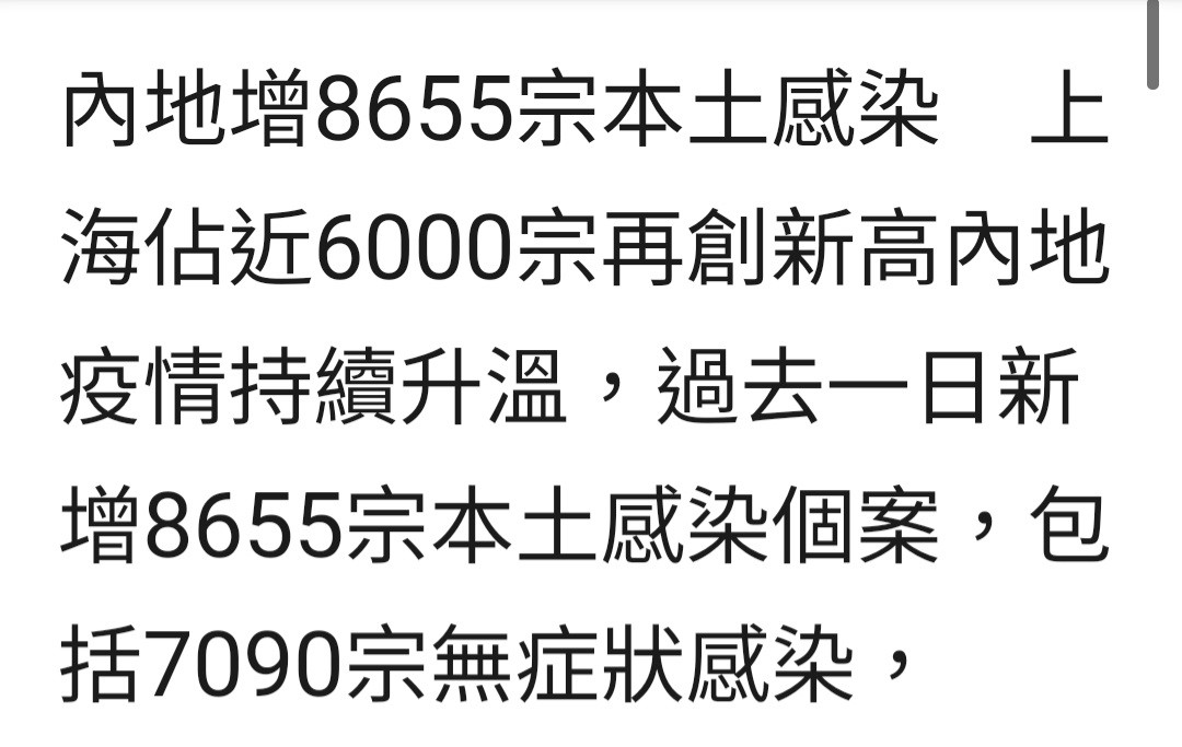 回覆 smile:香港今日確診為6981宗,內地超越了香港...