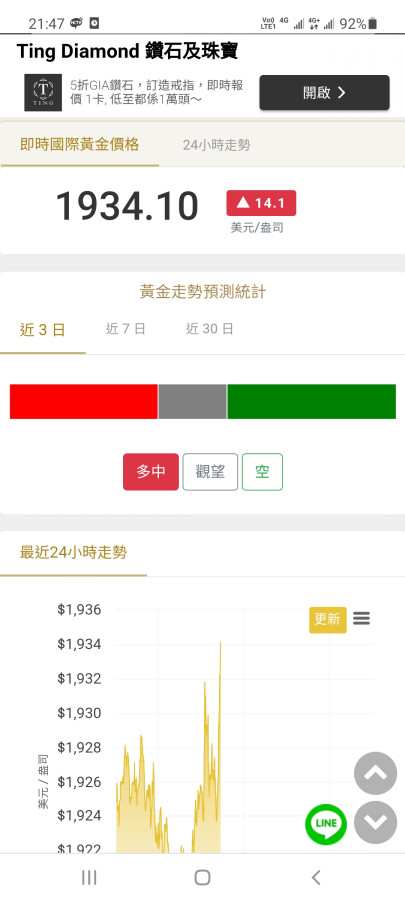 如果有朋友想觀察即時金價,不妨運用BullionVault 金價走勢圖。