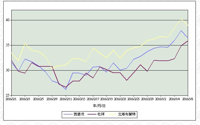 中央社 – 2016年2月13日 上午6:44 (中央社紐約12日綜合外電報導)油價今天大漲,美國西德州中級原油價格自2003年低點強勁反彈,因報導指出石油輸出國家組織(OPEC)願意減產原油,恐將舒緩全球供應過剩現象。 紐約市場西德州中級原油的3月期貨價格大漲3.23美元或12.3%,收在每桶29.44美元。 倫敦市場北海布倫特原油的4月期貨價格上漲3.3美元或11%,收在每桶33.36美元。1050213