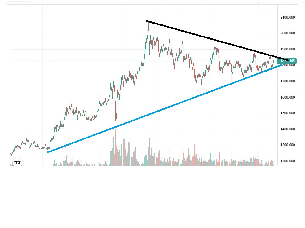 黃金市場看多且動能強勁,可能發動第三波漲勢直攻1900之上。