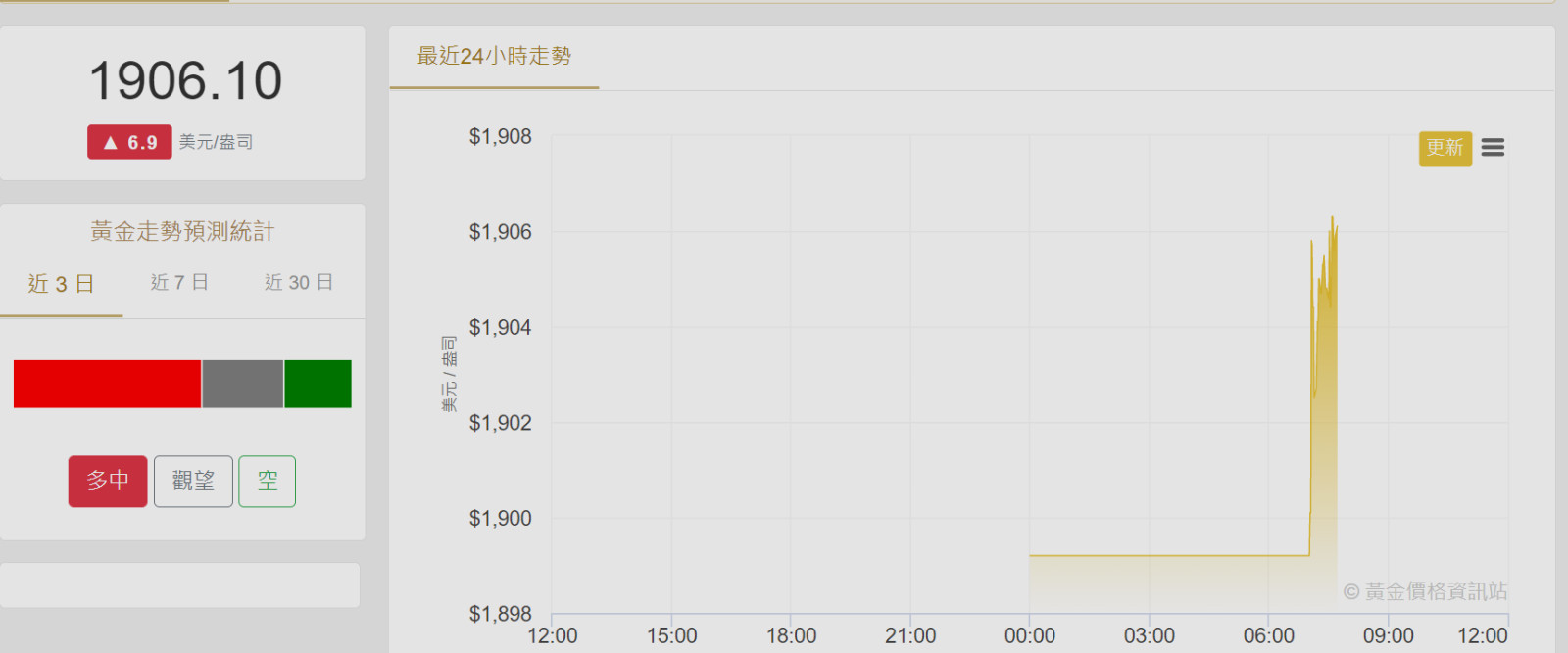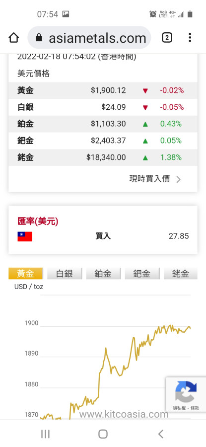 國際金價今天上午11點 (台北時間)突破去年11月15日高點1877,數度逼近1880美元/ 盎斯,是近8個月來的新高點,得到新支撐。