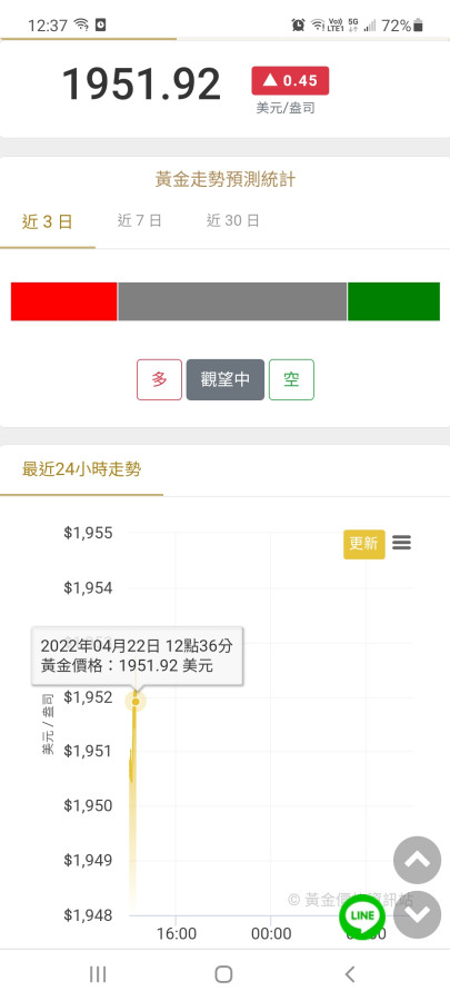 我在昨天晚上七點多有說,1930線是關鍵,雖然從線圖走勢來看,有利於多方繼續上攻,但空方已累積巨額黃金儲備,也急於趁價位高漲時脫手套現,因此在1930高地會發生多空相持不下的遭遇戰。