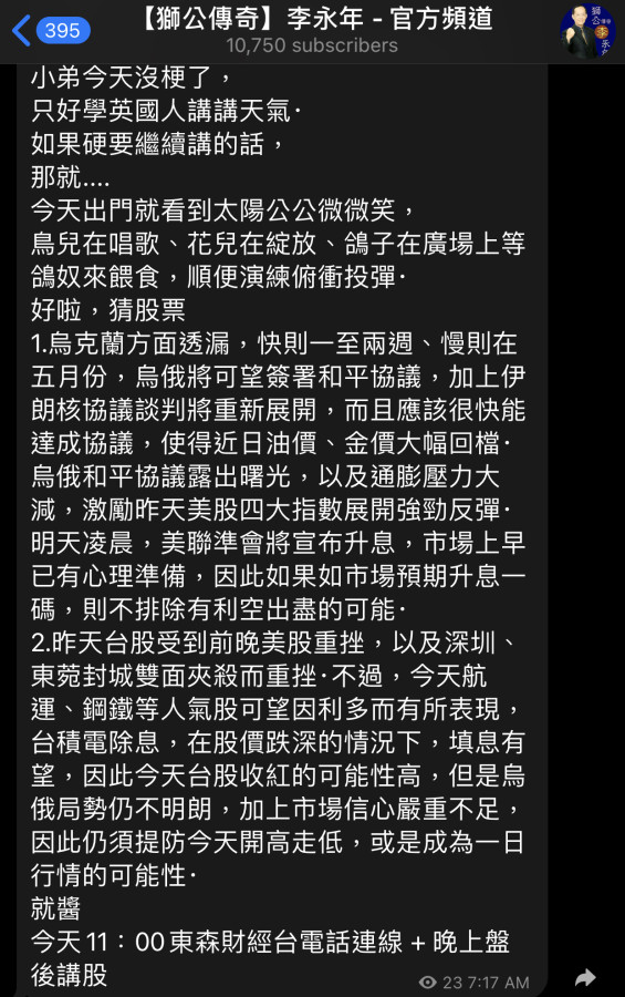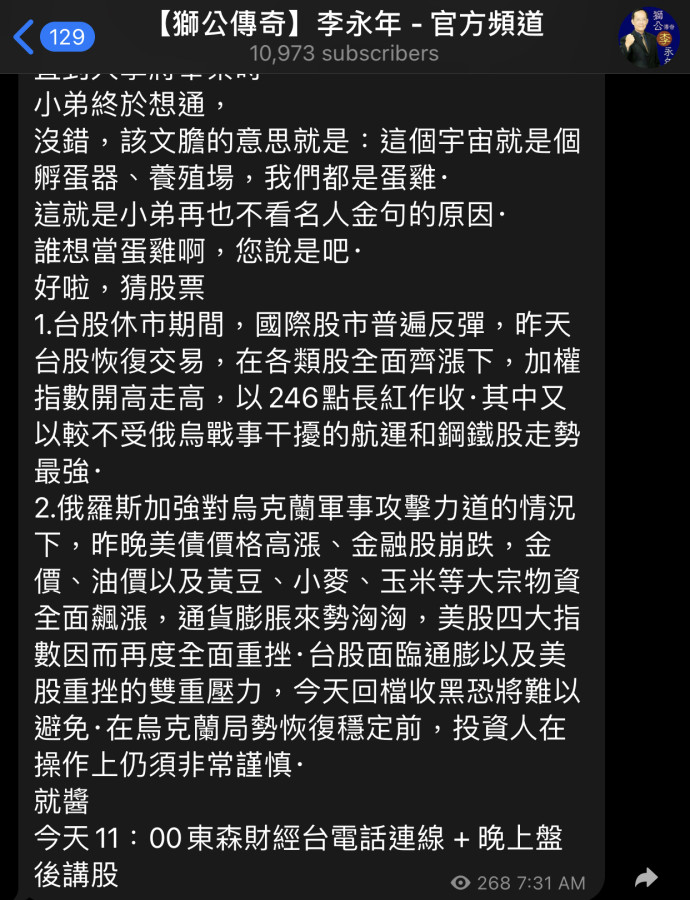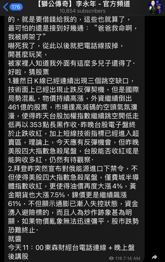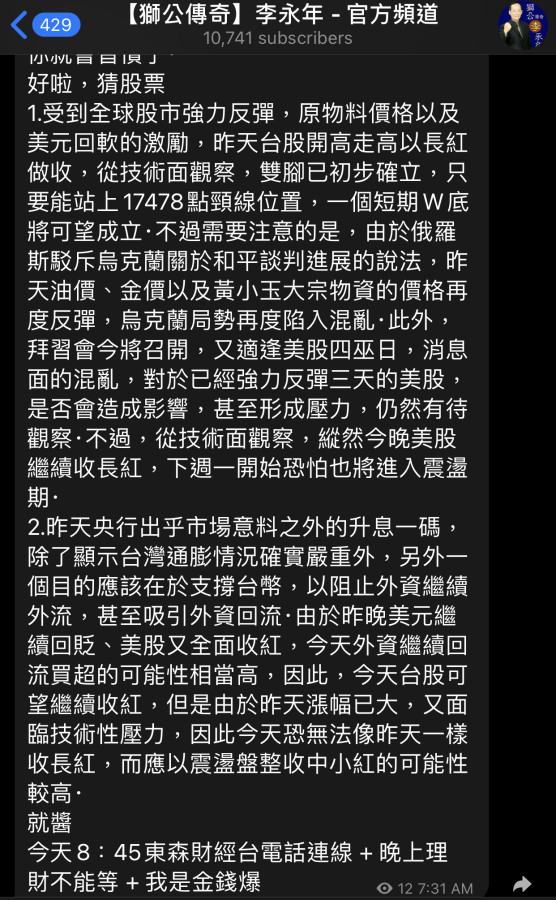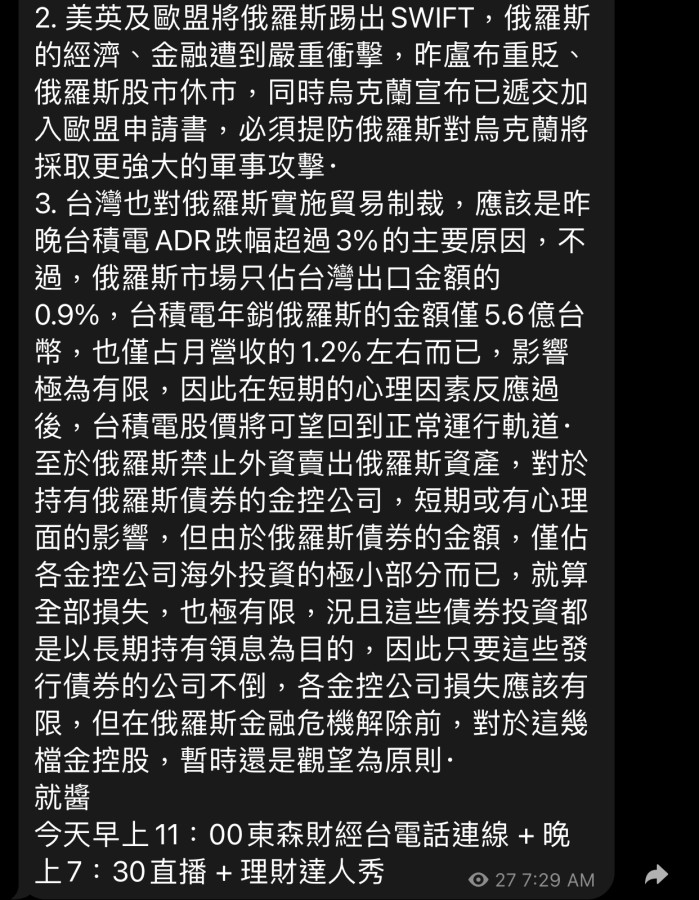 回覆 嗨爪主席:週一美股 我看狀況不是理想加上俄烏戰爭…...