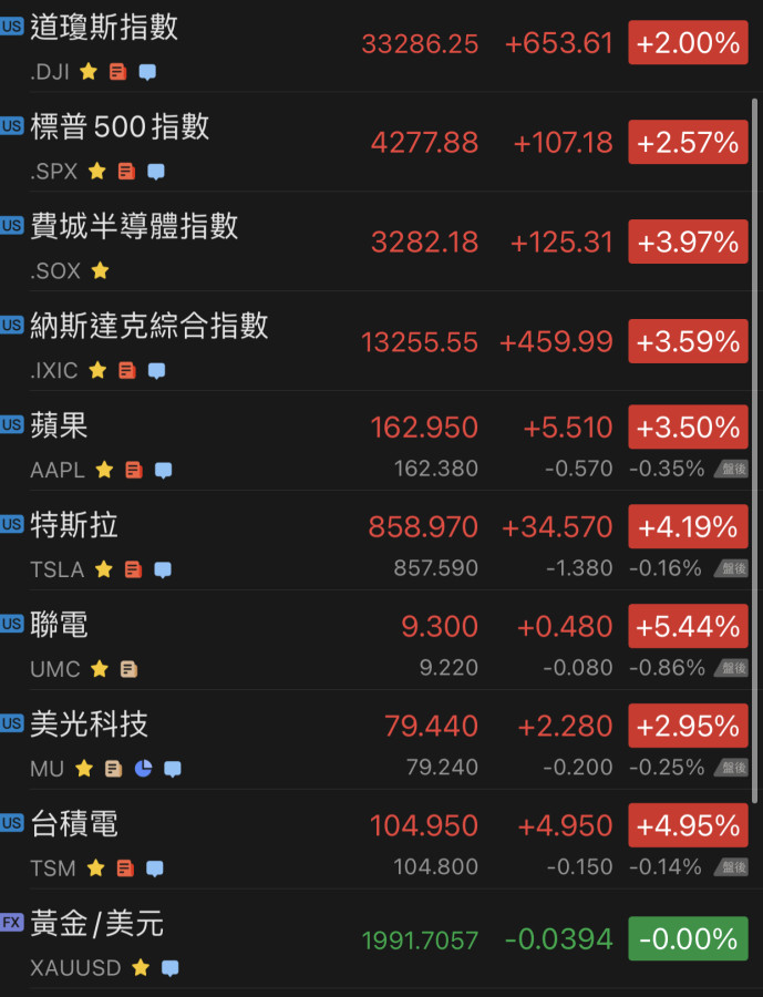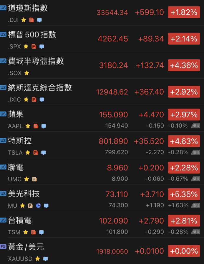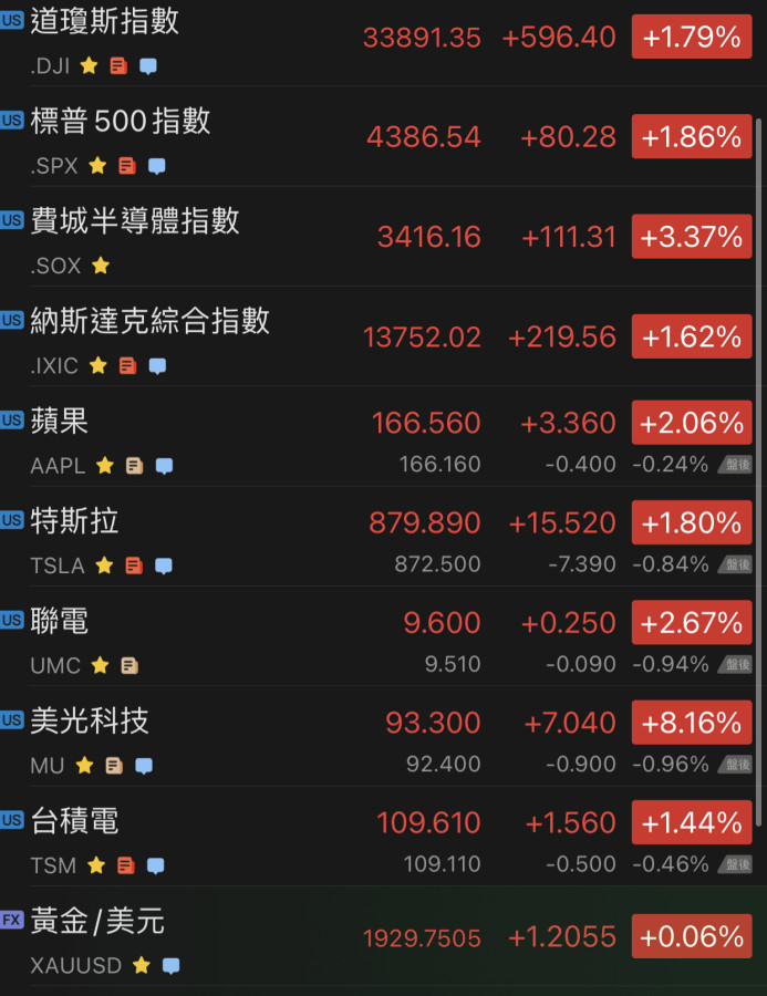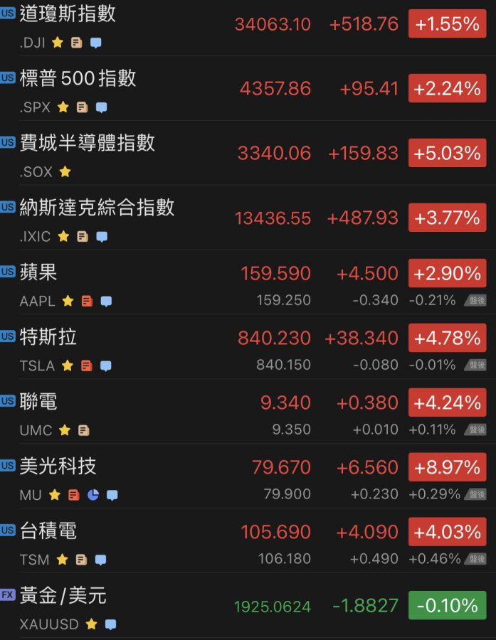 回覆 嗨爪主席:昨晚四大指數大漲 除了費半,其...