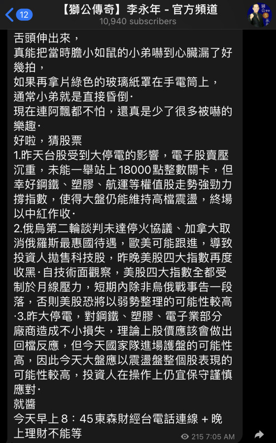 回覆 嗨爪主席:昨晚美股收黑今天大盤應該是5日線保衛戰...