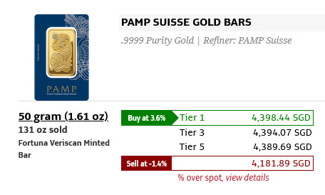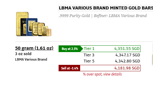 因為新加坡的Bullion店是 LBMA價錢會高些