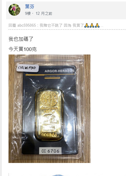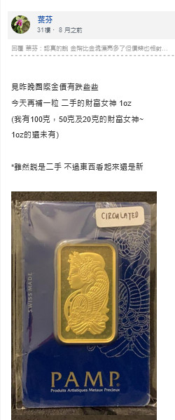回覆 Daisy0805:請問前輩們,買LBMA的金塊跟貴金屬公司...